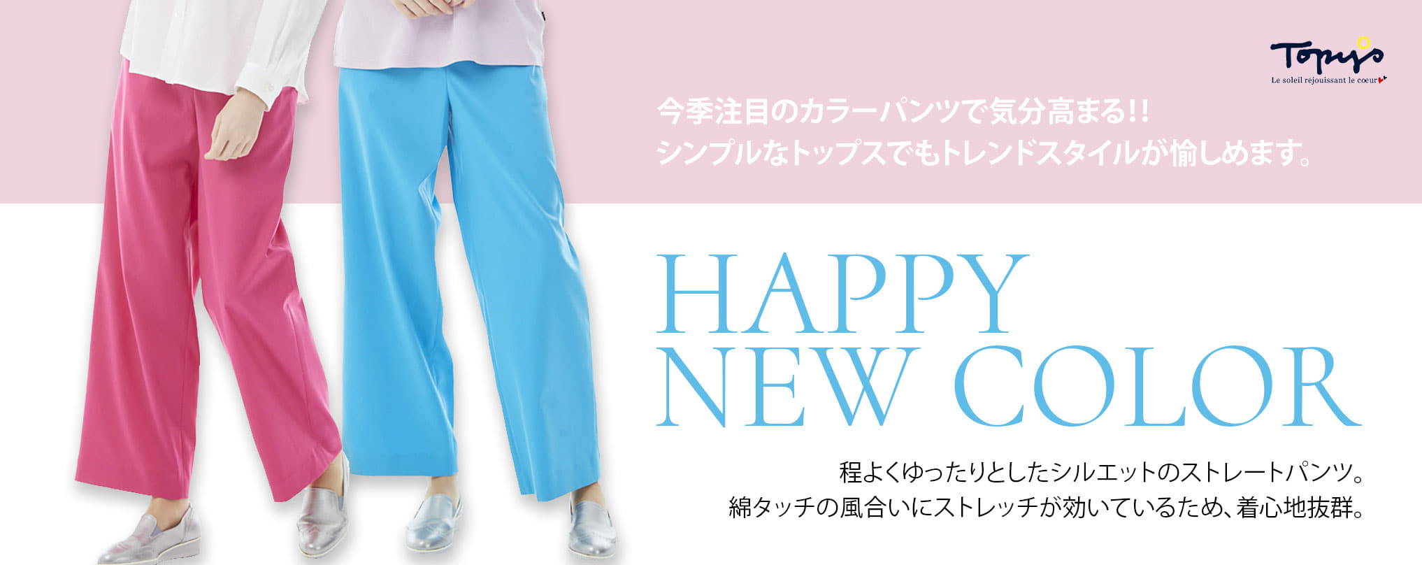 着心地を最優先に、流行にとらわれず、オフタイムを楽しむ、大人の女性のカジュアルウェアを提案します。 Topysブランドの展開レギュラーサイズは、40号(11~13号)になります。 |