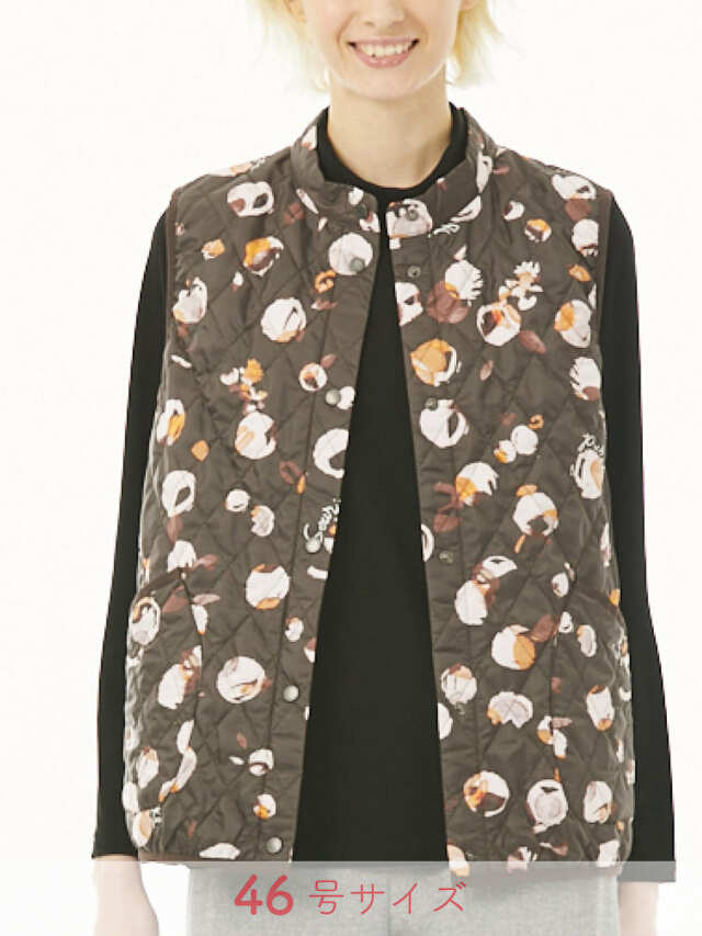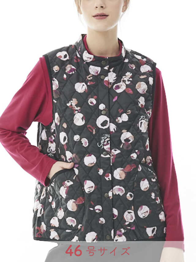 ベリーのようなデザインドットが可愛げなキルティング中綿ベスト。
