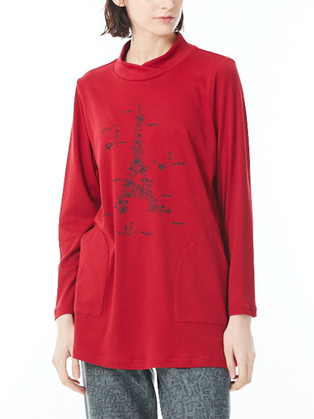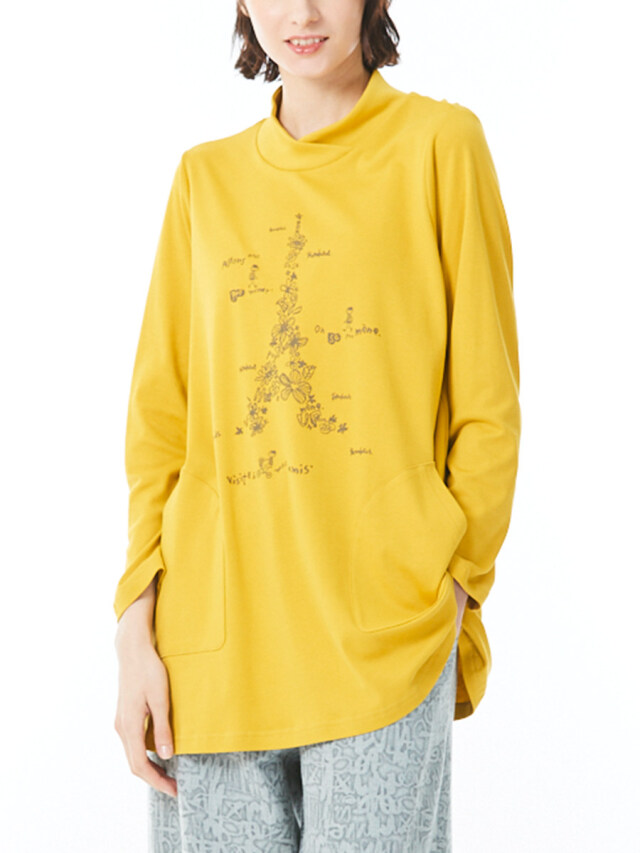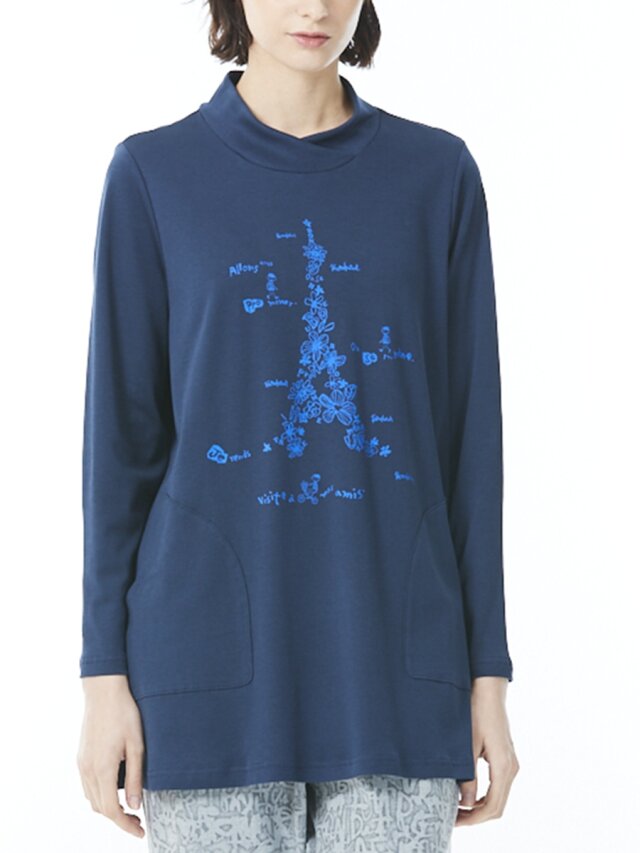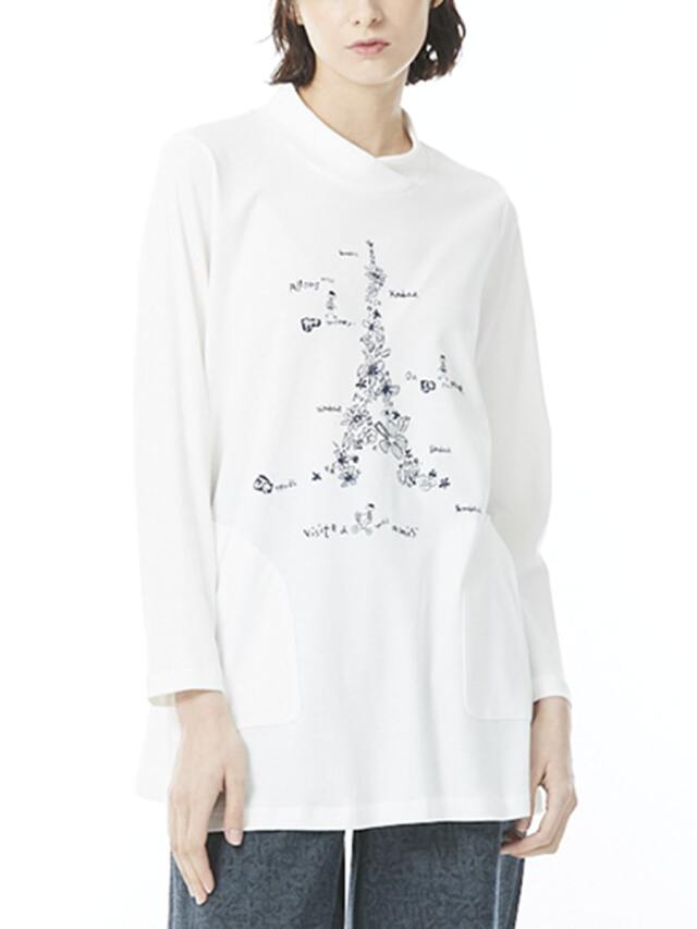 単色花とロゴで彩ったエッフェル塔がお洒落なプリントカットソー。