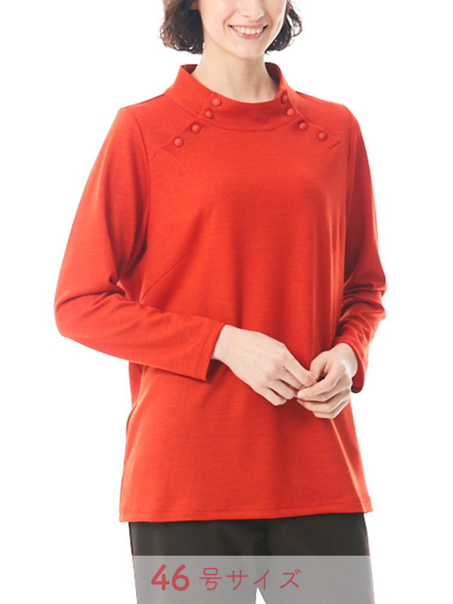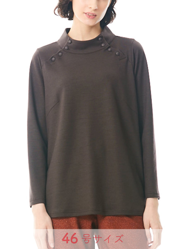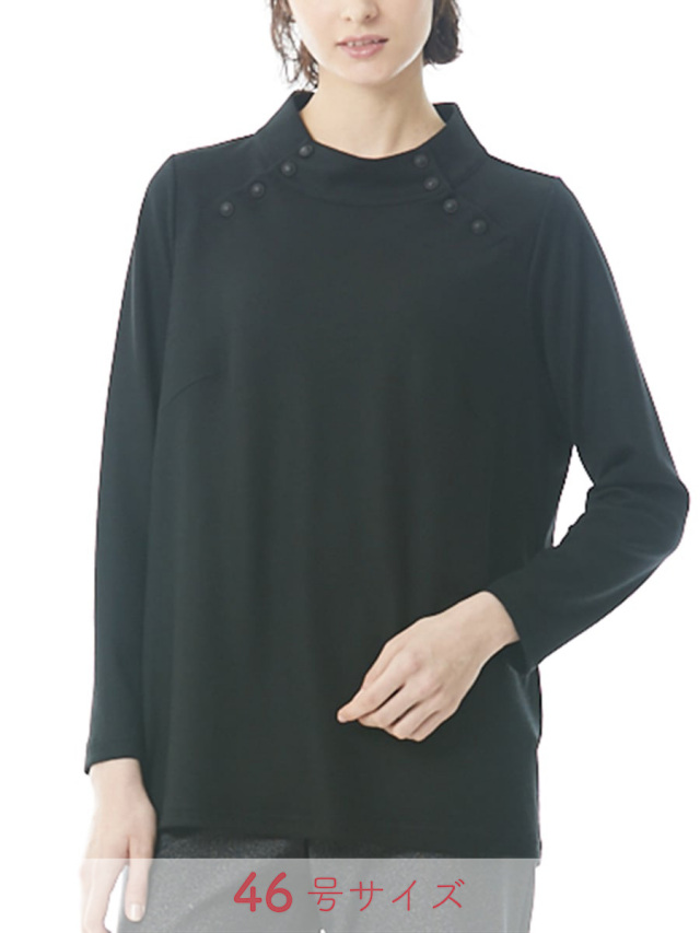 デコルテの品あるボタンデザインが素敵なカットソー。