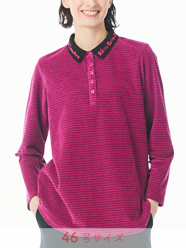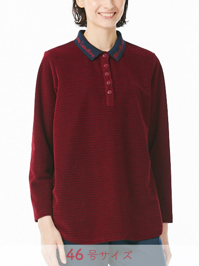 美しい発色の上質ベロアを使用した、あたたかなポロ衿カットソー。