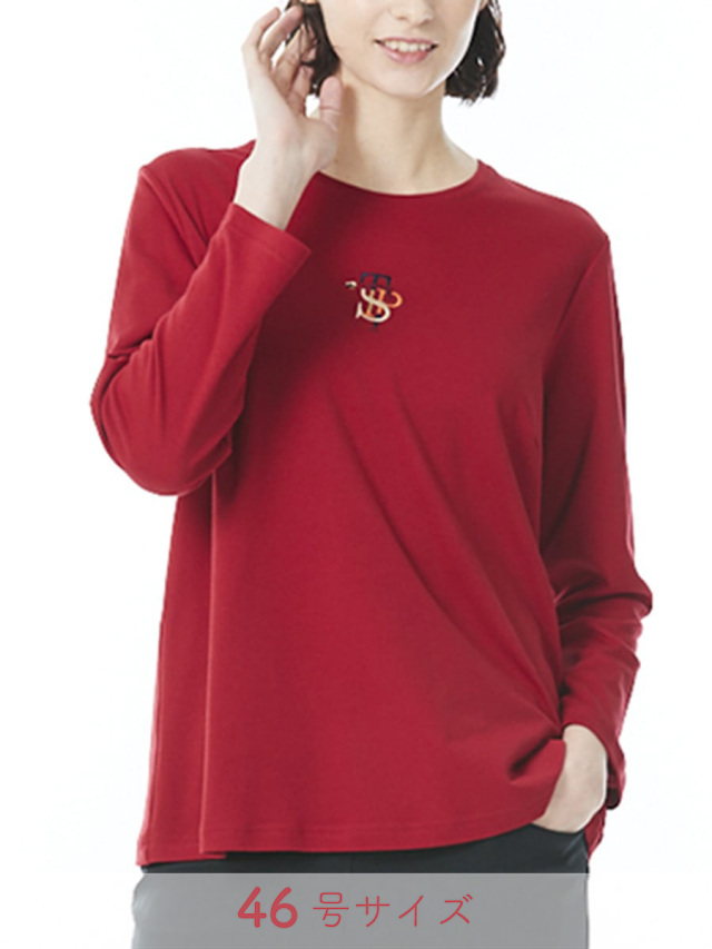 胸元に施されたロゴ刺しゅうがさりげなくアクセントになるカットソー。