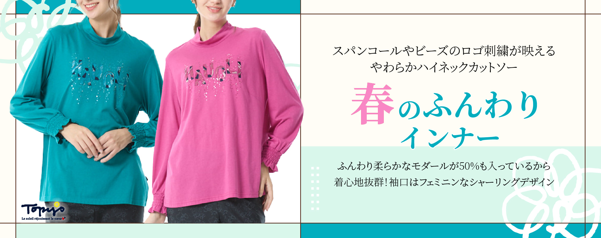 着心地を最優先に、流行にとらわれず、オフタイムを楽しむ、大人の女性のカジュアルウェアを提案します。 Topysブランドの展開レギュラーサイズは、40号(11~13号)になります。 |