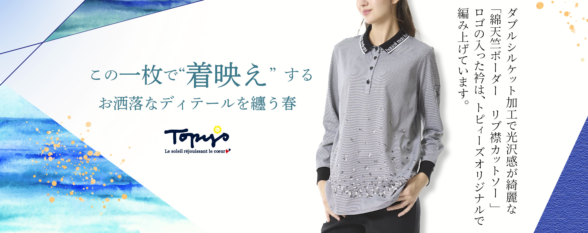 topys 着心地を最優先に、流行にとらわれず、オフタイムを楽しむ、大人の女性のカジュアルウェアを提案します。