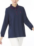 バイカラーの衿や袖口が印象的なポロ衿カットソー。
