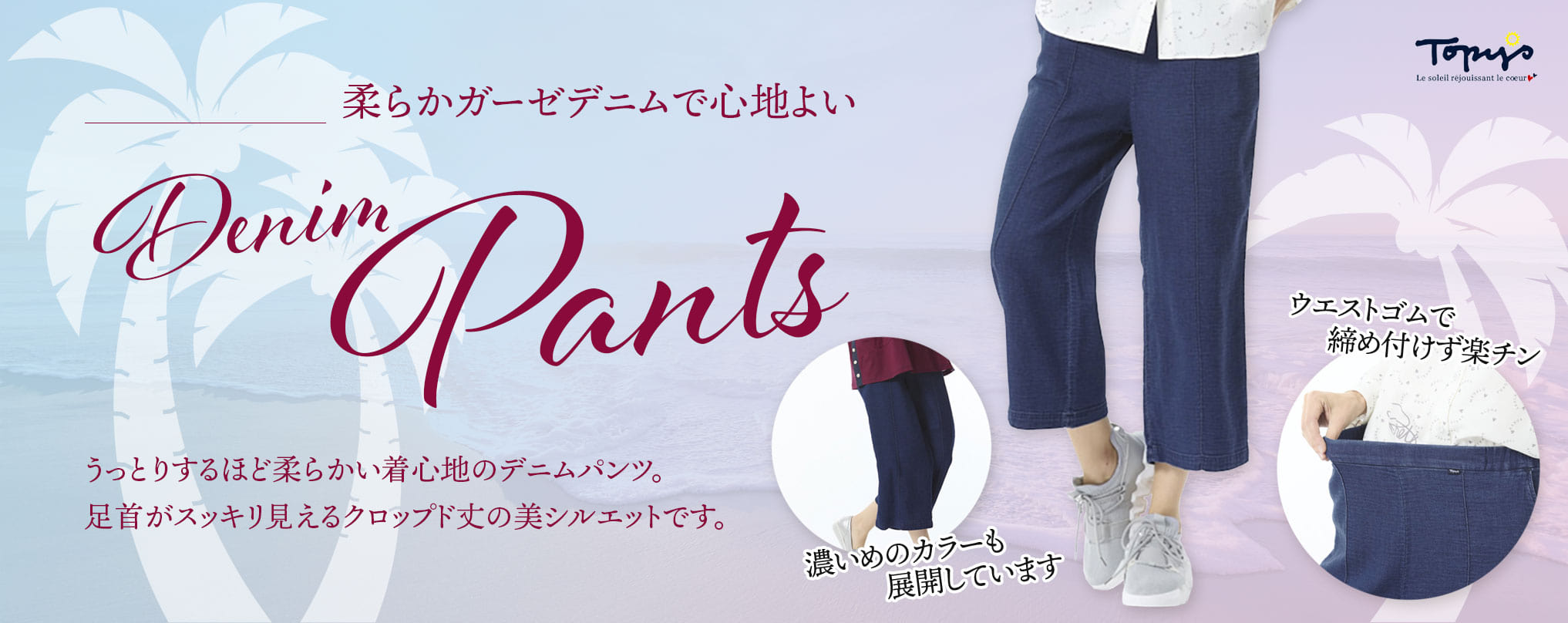 ガーゼデニムの柔らかな風合いが心地よいクロップドパンツ。