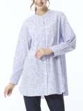 胸元をすっきりと魅せることができる、丸衿型のロングブラウス。