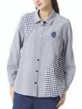 丸みあるカッティング切り替えがお洒落なミックスギンガムブラウス。