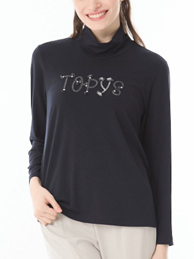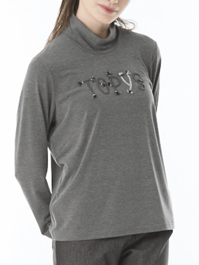 ロープのロゴ刺繍がお洒落なハイネックカットソー。しっとりとなめらかで肌触りのよい質感で人気の、アルガンオイル加工を施した生地を使用しています。