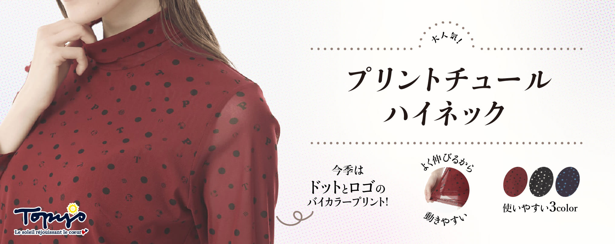 着心地を最優先に、流行にとらわれず、オフタイムを楽しむ、大人の女性のカジュアルウェアを提案します。 Topysブランドの展開レギュラーサイズは、40号(11~13号)になります。 |