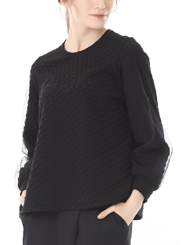 袖にチュールを付け加え、素材変化が上品な印象を与えるデザインです。