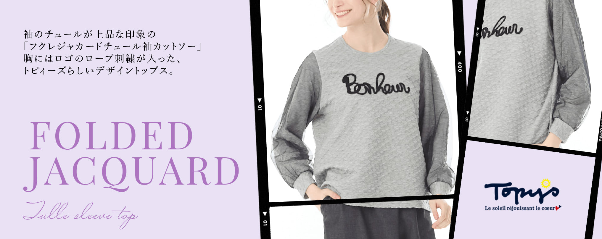 着心地を最優先に、流行にとらわれず、オフタイムを楽しむ、大人の女性のカジュアルウェアを提案します。 Topysブランドの展開レギュラーサイズは、40号(11~13号)になります。 |