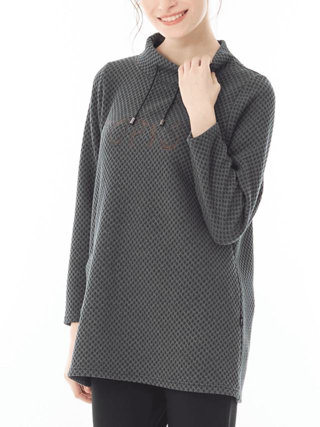 ふっくらとした温かみのあるジャカードを使用したチュニックカットソー。程よく緩みがあるため、あったかハイネックインナーを中に着用してお使いいただくこともできます。