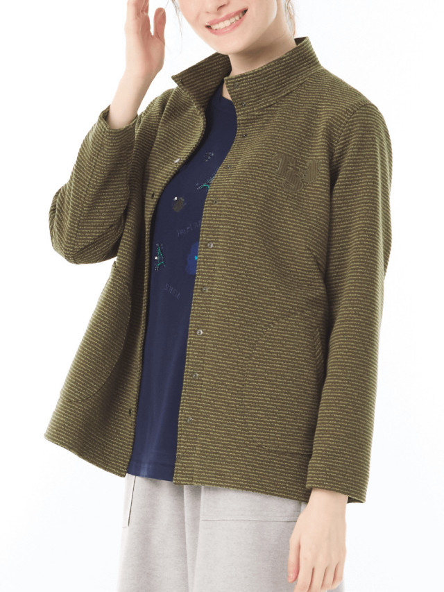 リップルボーダーカットソーを使用したカジュアルなジャケット。