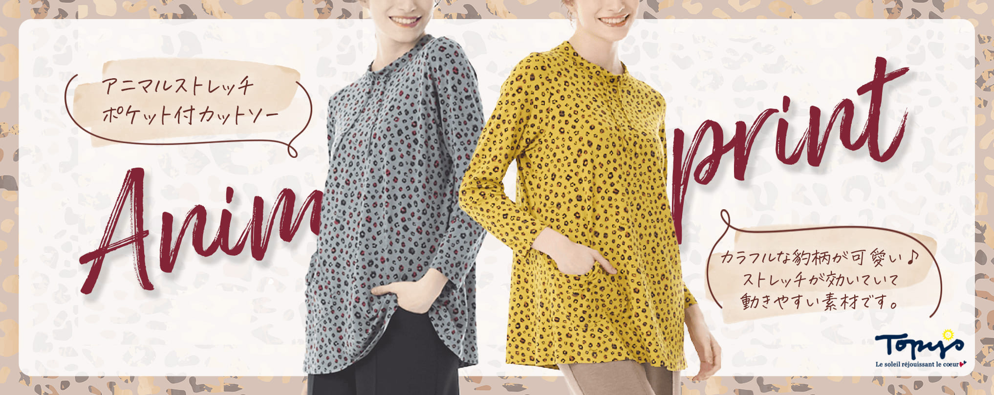 起毛のレーヨンベア天をプリント下に使用しています。温もりをストレッチ性に優れたアニマルプリントです。