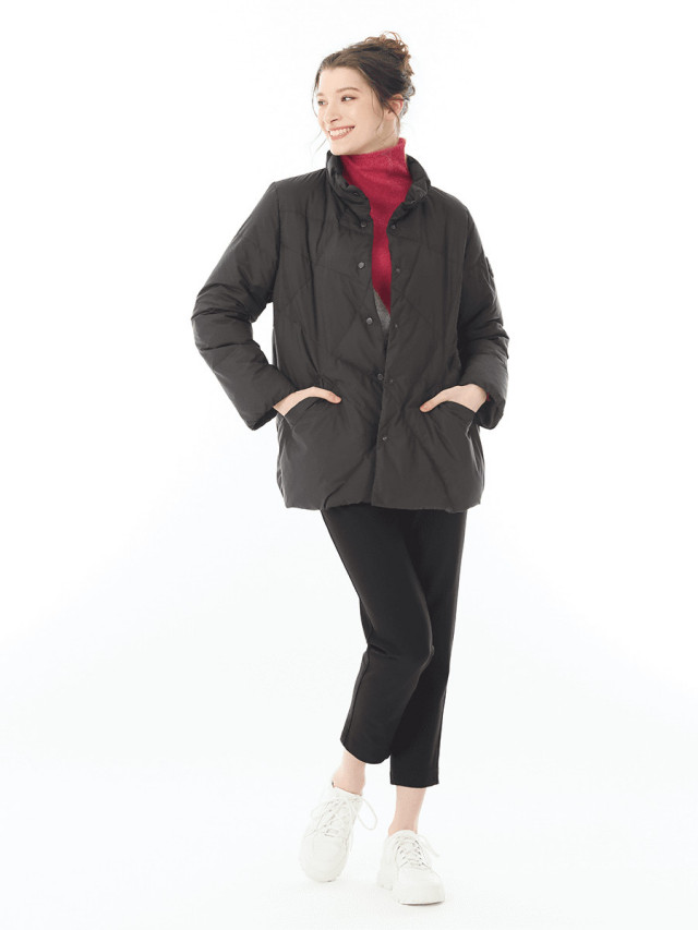 軽量でマットな質感のタフタを使用したダウンジャケット。
