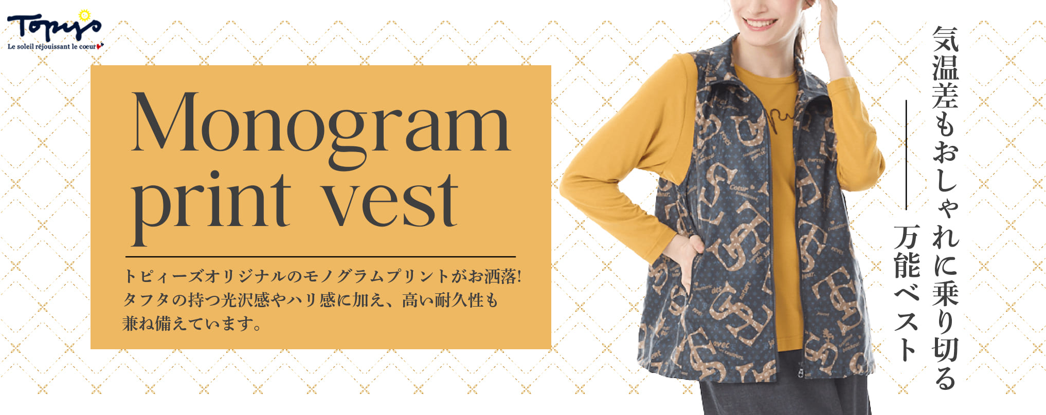トピィーズオリジナルのモノグラムプリントがお洒落なベスト。
