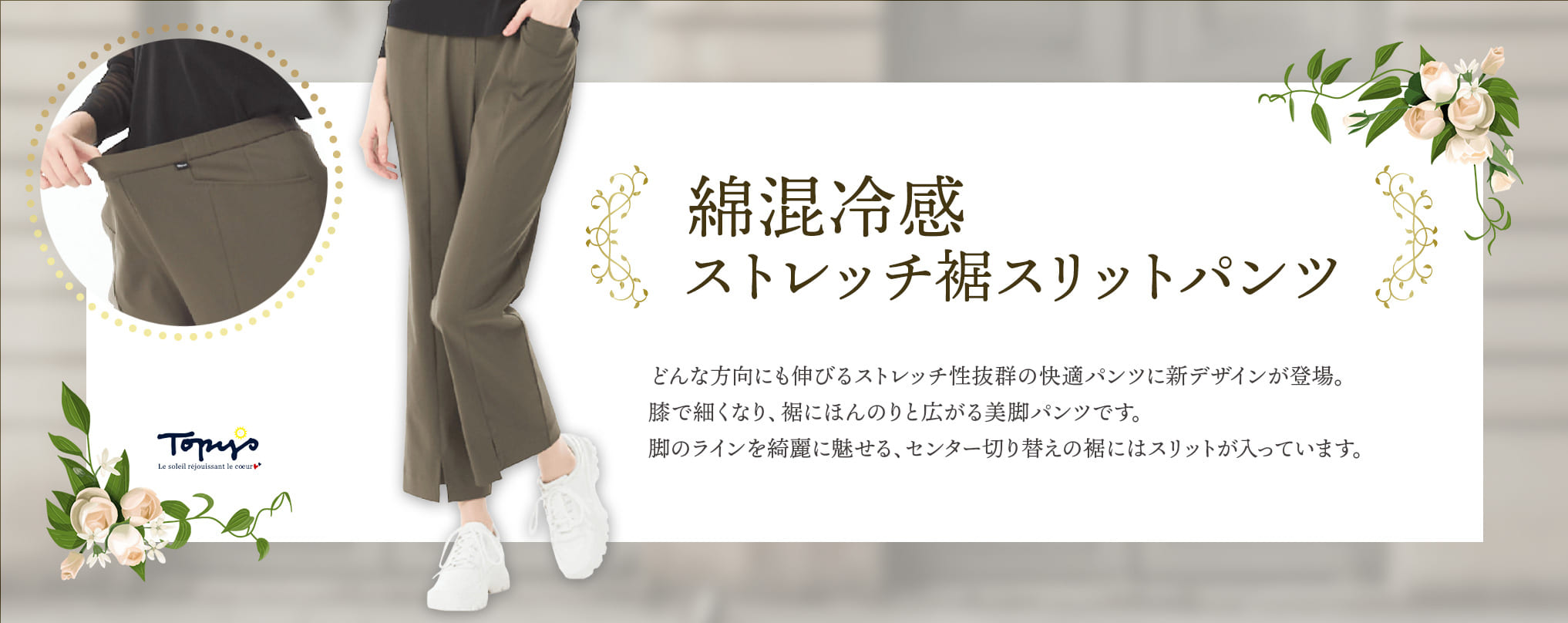 いつものストレートパンツとは違い、スリットの入ったトレンドパンツなので一枚は持っておきたいアイテムです。
