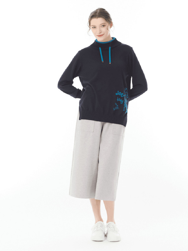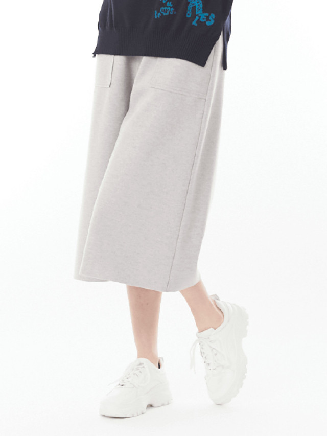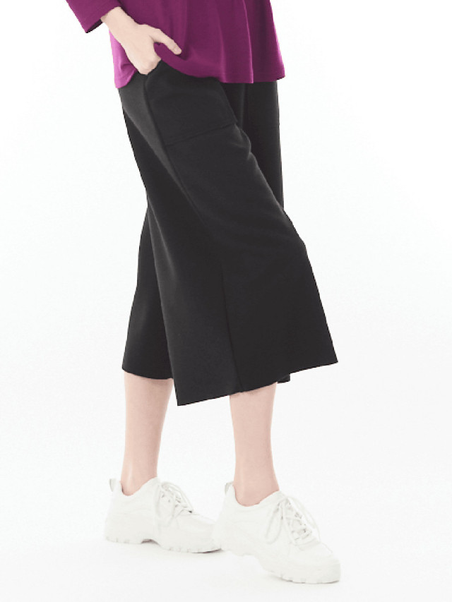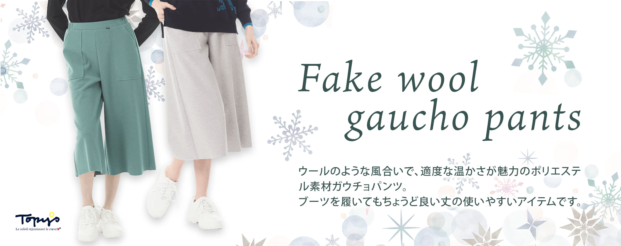 ウールのような風合いで、適度な温かさが魅力のポリエステル素材のガウチョパンツ。