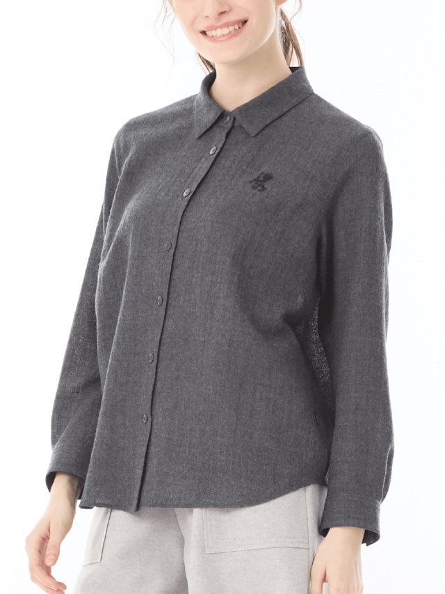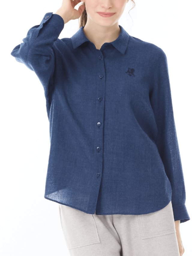 薄手で柔らかいからちょうど良い、ウール100%のガーゼ素材シャツ。とっても柔らかくエアリーな素材なので、ニットやあったかカットソーのインナーとして最適です。