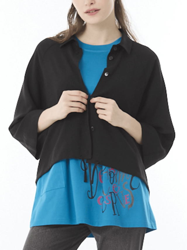 ブルゾン感覚でご着用いただけるショート丈ブラウス。