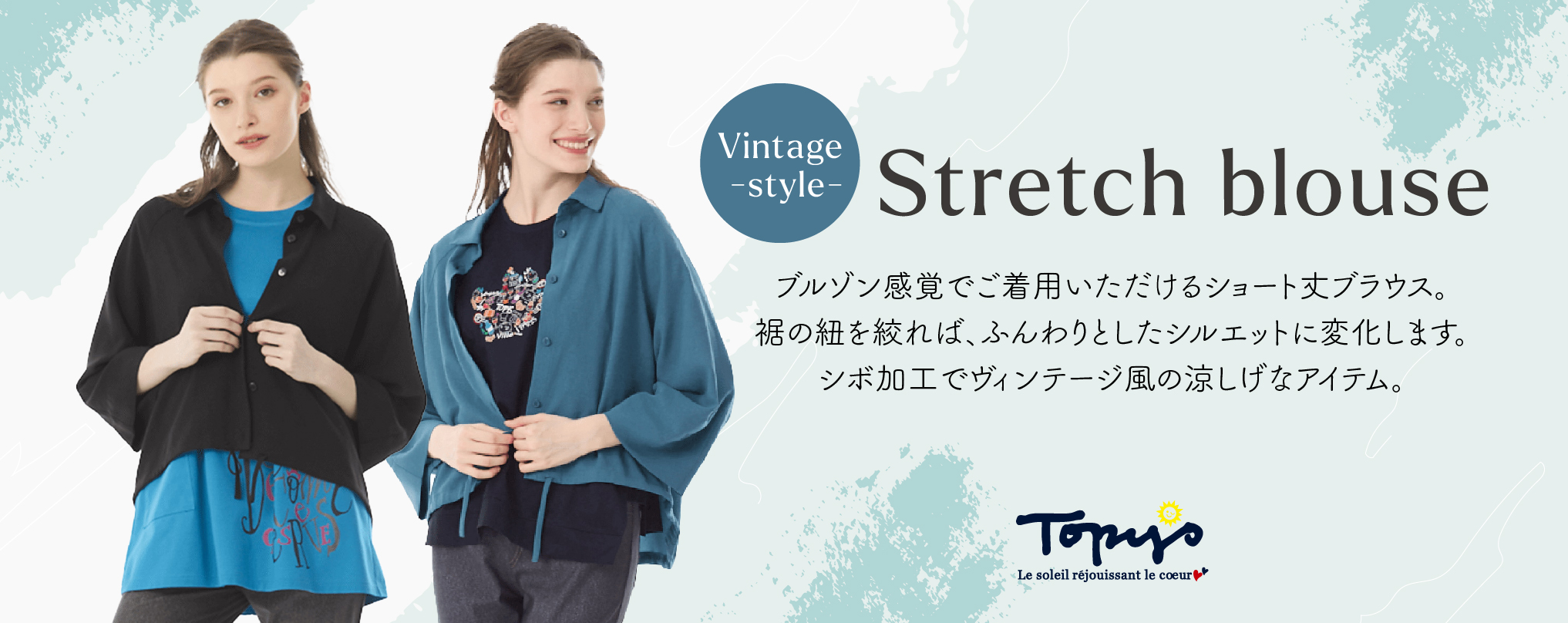 着心地を最優先に、流行にとらわれず、オフタイムを楽しむ、大人の女性のカジュアルウェアを提案します。 Topysブランドの展開レギュラーサイズは、40号(11~13号)になります。 |