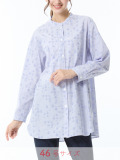 胸元をすっきりと魅せることができる、丸衿型のロングブラウス。