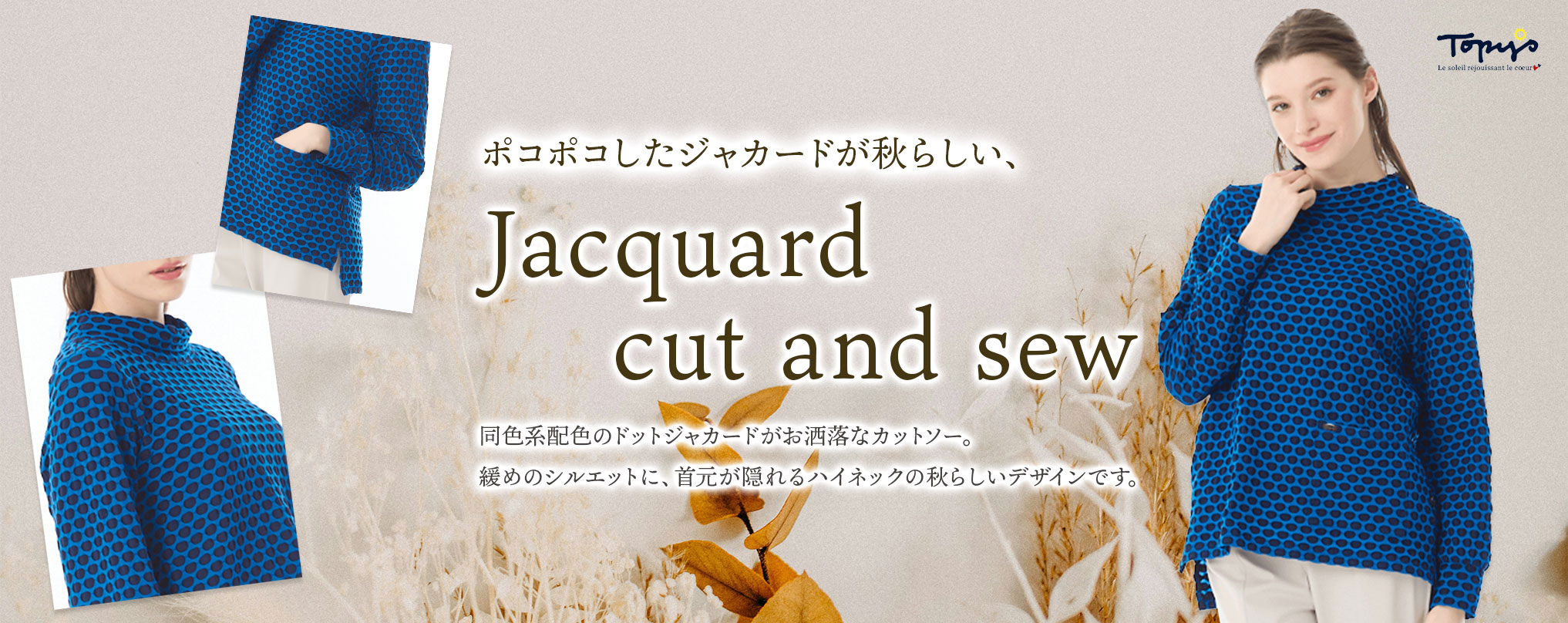 着心地を最優先に、流行にとらわれず、オフタイムを楽しむ、大人の女性のカジュアルウェアを提案します。 Topys Plusブランドの展開レギュラーサイズは、46号(15~17号)になります。 40号サイズ(11~13号)の商品は、Topysコーナにて販売しております。 |