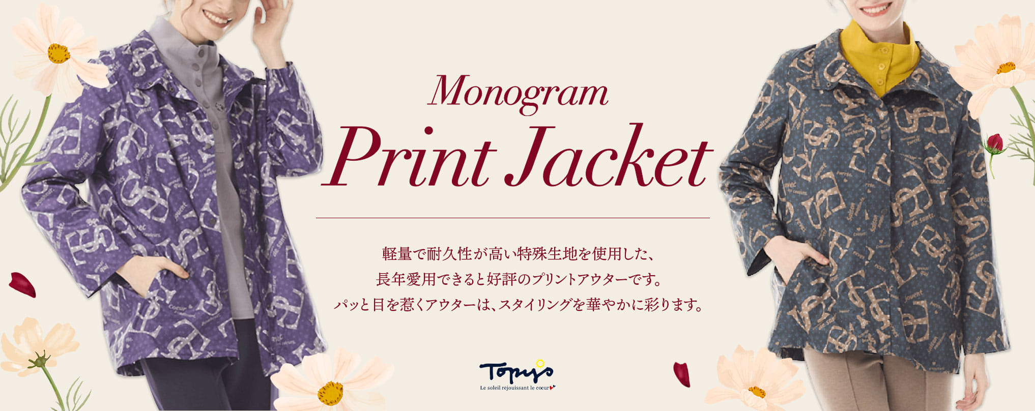 今季は落ち着いた配色で上品な印象の、トピィーズオリジナルのモノグラムプリントです。