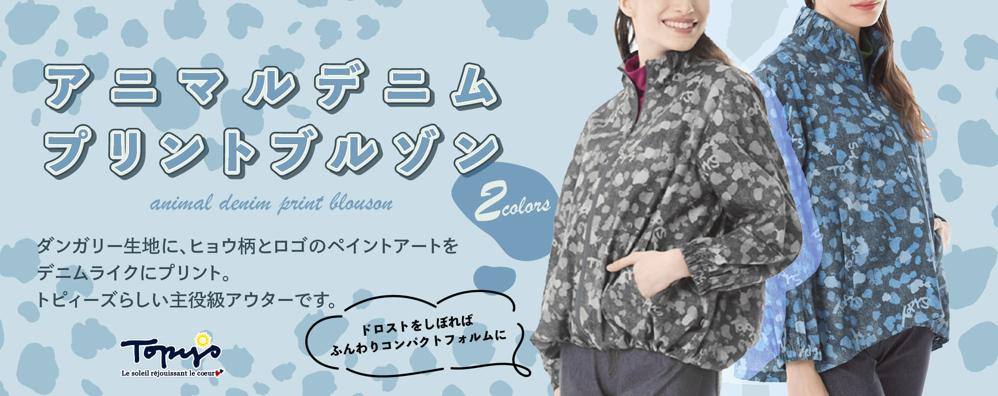 着心地を最優先に、流行にとらわれず、オフタイムを楽しむ、大人の女性のカジュアルウェアを提案します。 Topys Plusブランドの展開レギュラーサイズは、46号(15~17号)になります。 40号サイズ(11~13号)の商品は、Topysコーナにて販売しております。 |