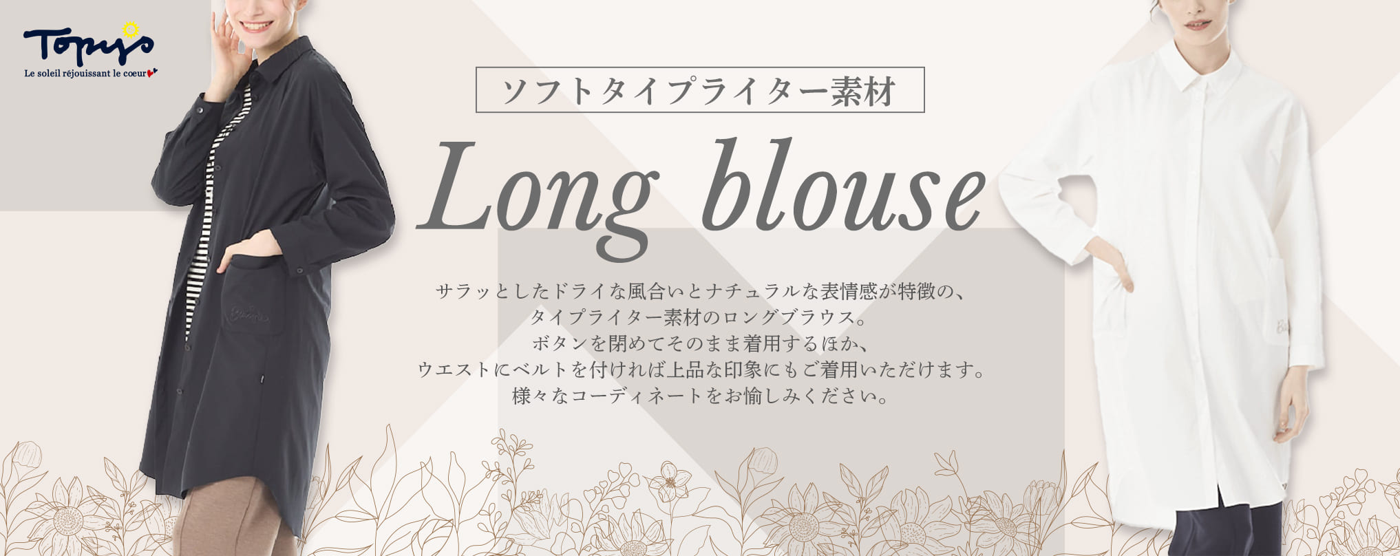 サラッとしたドライな風合いとナチュラルな表情感が特徴の、タイプライター素材のロングブラウス。 パンツと合わせてボタンを閉めてそのまま着用するほか、ウエストにベルトを付ければ上品な印象にもご着用いただけます。また、前を開けてコート感覚でもお使いいただけるため、様々なコーディネートを愉しんでいただけます。