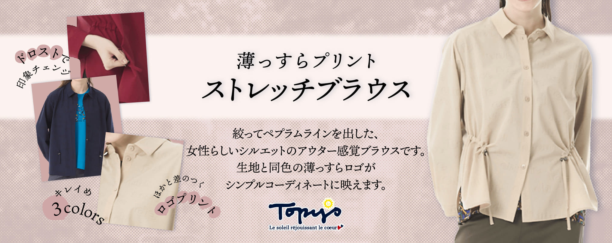 同色のロゴプリントが薄っすらと入った、トピィーズらしいこだわりが魅力です。