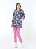 カラフルなモンステラ柄が目を惹くチュニックカットソー。