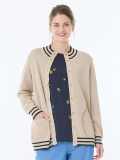 衿や裾のスポーティーなラインがアクセントになり、程よくカジュアルな印象に。さりげなく施されたロゴジャカードが、上品さの中に遊び心を添える一枚です。
